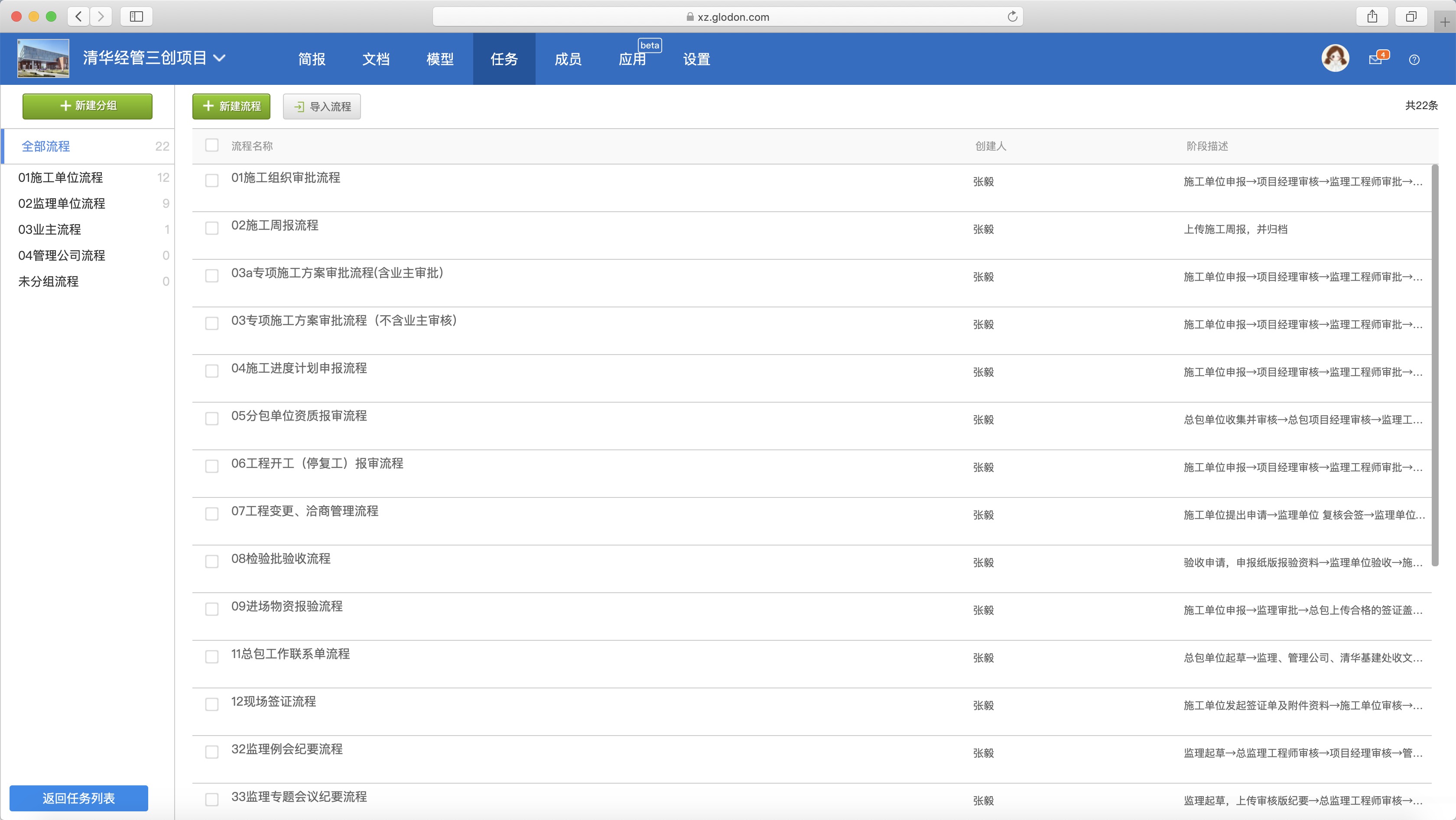 - 协筑提供的流程模板可以根据项目的管理特点自定义编制,且能使流程统一规范化,具备将线X程审批搬到线上的条件,大大提升了工作流程效率。