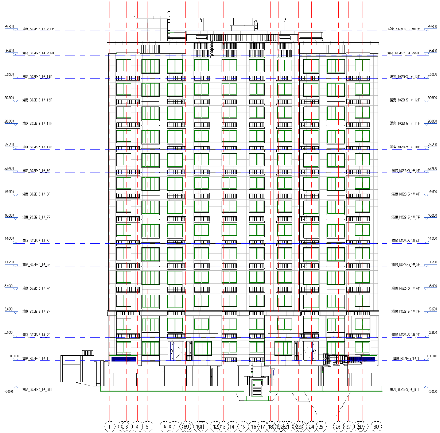 初步设计阶段的BIM应用主要是对各专业间平面、立面、剖面位置进行一致性检查,将修正后的模型进行剖切,生成平面、立面、剖面,形成初步设计阶段的建筑、结构模型和二维设计图。