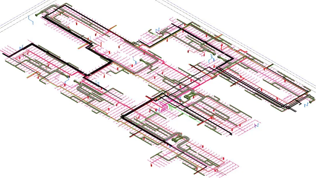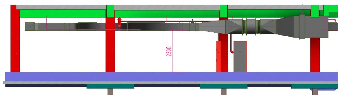 待碰撞检测与管线综合完成后,通过BIM模型按照设计单位的净高要求进行净高分析工作,利用BIM软件模拟建筑物的三维空间关系和场景,通过漫游、动画等形式,感受身临其境的视觉、空间感受,方便解决地下室上方管线的碰撞、净高出现的不足等问题。