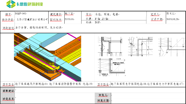 在施工图设计阶段,BIM技术主要应用在检查项目施工图纸的问题,在本阶段运用BIM技术提供了33版的问题报告,1份的净高报告,发现了178例的问题。