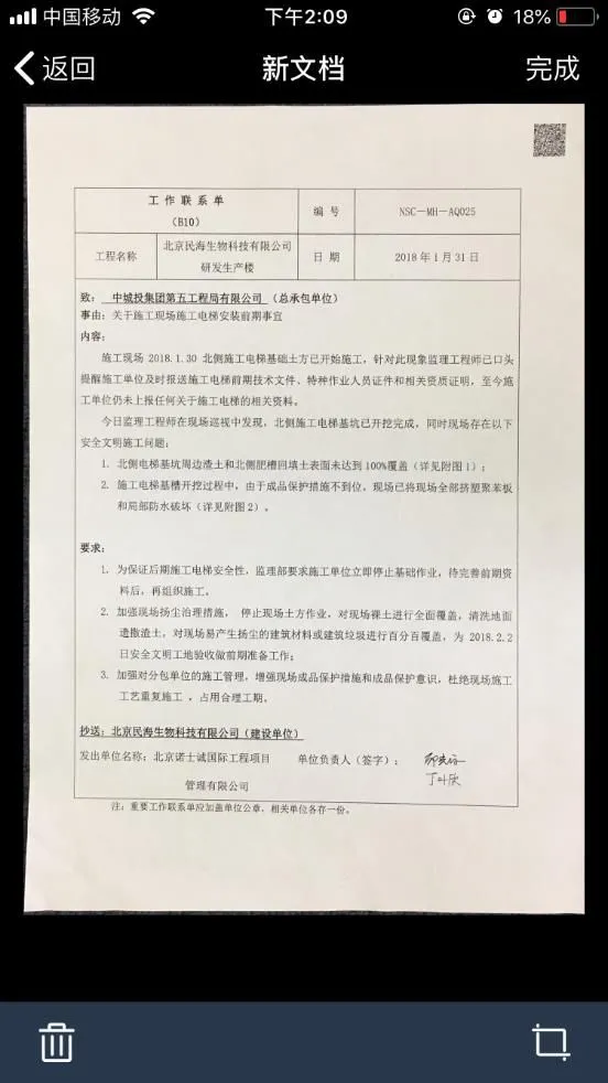 协筑手机端文档扫描功能,便于项目部文档资料的线上存档