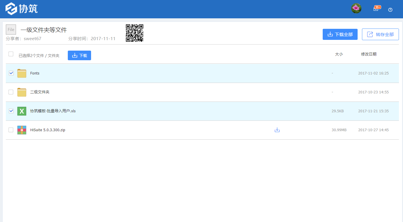 2. 统一了单文件和多文件分享的界面,目前均支持二维码扫描功能。
